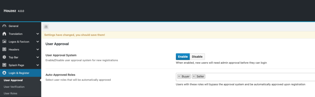 This powerful feature introduces a complete verification ecosystem, from the moment a user registers to when their profile becomes visible on the site. As an admin, you can easily approve or reject new registrations, suspend existing users, or set certain user roles (like agents or agencies) to be auto-approved if needed.